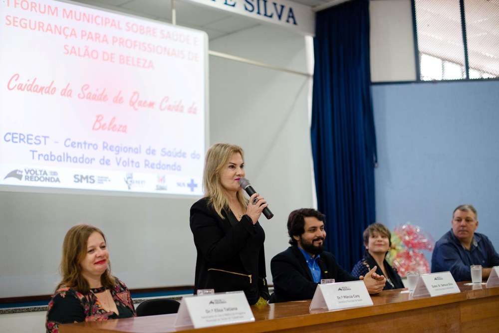 O prefeito de Volta Redonda, Samuca Silva, realizou a abertura do I Fórum sobre Saúde e Segurança para Profissionais de Salões de Beleza, na manhã desta segunda-feira, dia 24, no auditório do UGB (Centro Universitário Geraldo Di Biase), no Aterrado. A iniciativa partiu do Cerest/VR (Centro Regional de Saúde do Trabalhador) e contou com o apoio da Secretaria de Saúde de Volta Redonda. O evento aconteceu até 16h30 e teve a participação de, aproximadamente, 300 pessoas. Participaram do evento, a secretária municipal de Saúde, Márcia Cury; a secretária municipal de Políticas Públicas para Mulheres, Dayse Penna; o coordenador municipal de Fisioterapia de Volta Redonda, Vladimir Lopes Souza; e o Coordenador do Cerest/VR, Marcelo Cavaliere.