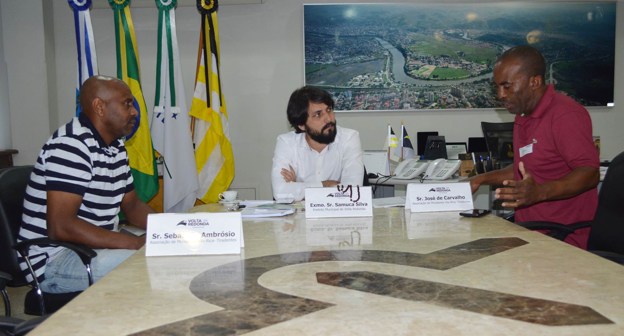 O prefeito de Volta Redonda Samuca Silva recebeu nesta segunda-feira, dia 03, em seu gabinete no Palácio 17 de Julho, os novos presidentes da Associação de Moradores do bairro Vila Rica, Três Poços. No encontro o presidente Sebastião Ambrósio dos Santos e o vice-presidente José de Carvalho falaram sobre as demandas do bairro e agradeceram os serviços que já estão sendo realizados pela prefeitura, no local.